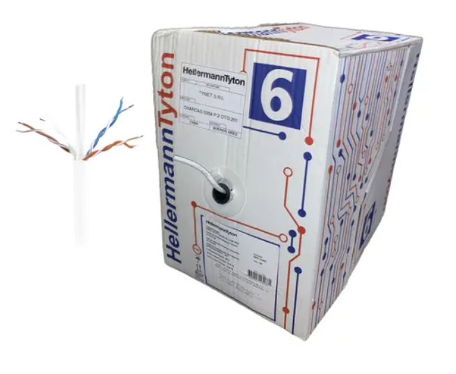 ROLLO CABLE UTP CAT 6 GRIS CLARO 100% COBRE INTERIOR BOBINA 305MTS HELLERMANN