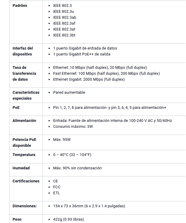 INYECTOR POE++ 95W IEEE 802.3 IEEE 802.3u IEEE 802.3ab IEEE 802.3af IEEE 802.3at IEEE 802.3bt Trendnet